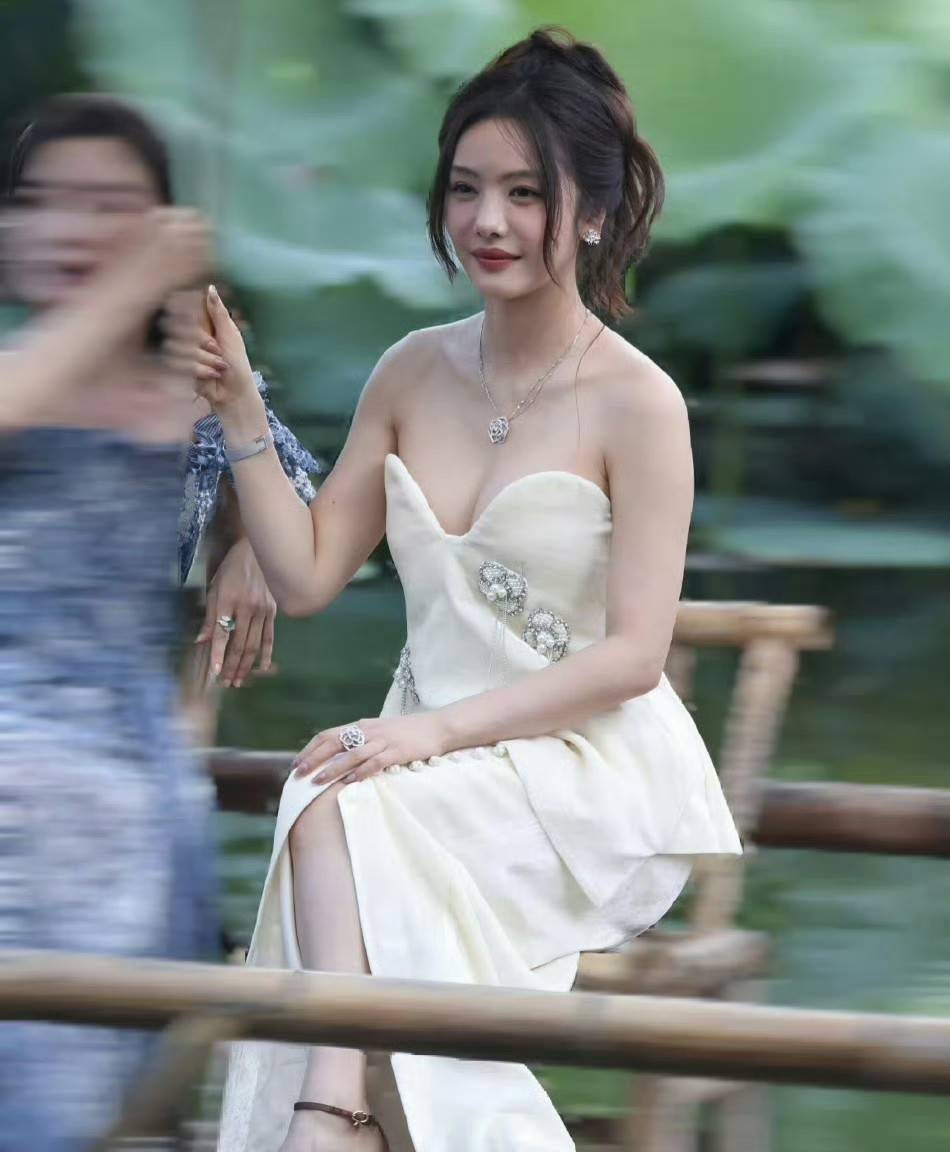 这并非蔡文静首次挑战传统审美。去年上海时装周,她曾以28.8万元深V钉珠白裙光脚走红毯,直言'大地给予的能量比高跟鞋更稳',相关话题阅读量突破15.8亿。此次宜昌电影节的造型延续其标志性'反叛美学',但网友评价呈现两极:支持者认为这是女性穿衣自由的宣言,反对者则质疑在可能有未成年人的公众场合过度暴露是否妥当。